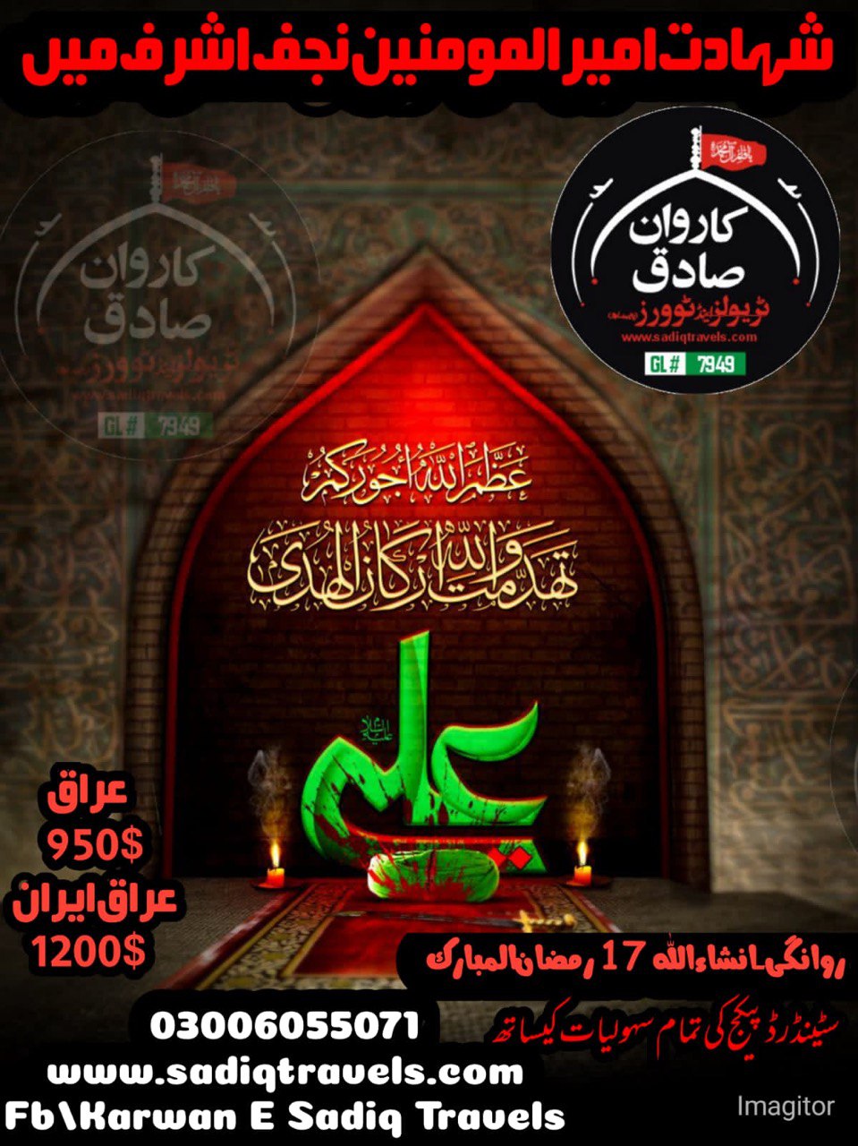 شہادت امیر المؤمنین امام علی علیہ السلام نجف اشرف میںBy Karwan e Sadiq Travels / January 31, 2022 شہادت امیر المؤمنین امام علی علیہ السلام نجف اشرف میں